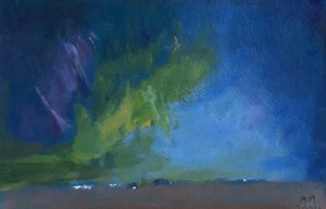 Het natuurfenomeen Noorderlicht is vrij zeldzaam in Nederland en varieert van roze rood, oranje naar blauw, groen, paars en lila. Na berichtgeving hierover zag ik online veel foto’s en werd geïnspireerd door de mooie vormen en kleuren. In deze fase begon ik met het (na)schilderen van het Noorderlicht in Nederland. In 2024 was ook in mijn eigen woonomgeving het Noorderlicht te zien. Na ongeveer een half uur verdween dit verschijnsel langzaam. Uiteraard heb ik daar ook schilderijen van gemaakt.