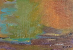 2024Noorderlicht in Nederland met geel als hoofdkleur op hardboard geschilderd